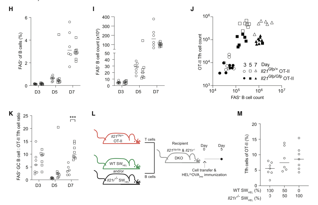 Fig4:探究IL-21与B细胞以及生发中心之间关系的相关实验