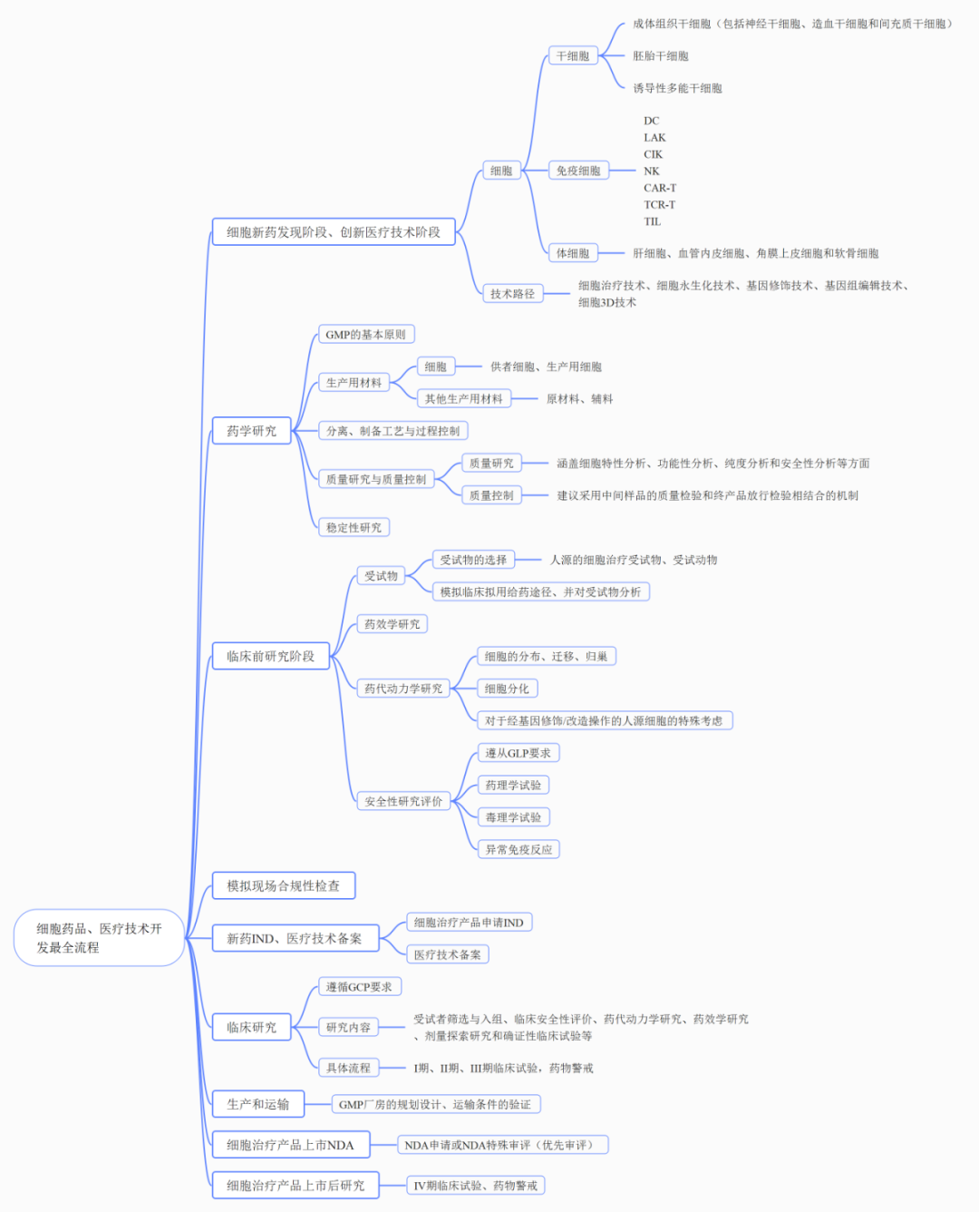 目前,细胞治疗药物从研发到上市的路径已经十分清晰,具体过程详见下图: