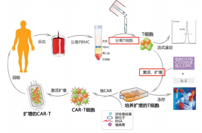 由于纳米磁珠是性质优良的偶联载体,同时具有结合与分离的功能,能够大大地简化传统复杂性的实验操作,具有明显的提高分离和富集效率优势,因而在生物学和医学领域得到了广泛的应用。比如当今备受关注的CAR-T疗法,在将T细胞免疫‘战士’变成‘超级战士’前,必须分离富集获得我们需要的目的细胞,而磁珠在这个过程中就发挥了积极作用。选用纳米磁珠作为T细胞分选策略,市场上主要有CD3、CD4或者CD8的分选磁珠试剂。