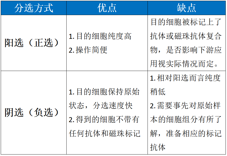 免疫磁珠细胞分选根据所标记细胞的不同大致可分为阳性分选(正选)和阴性分选(负选):