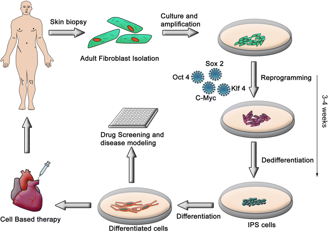 一个成熟的iPSC疗法,首先在前期需要关键的四个过程,包括体细胞分离与培养、介导载体的构建、诱导因子的导入及细胞培养以及iPSC的筛选及鉴定。