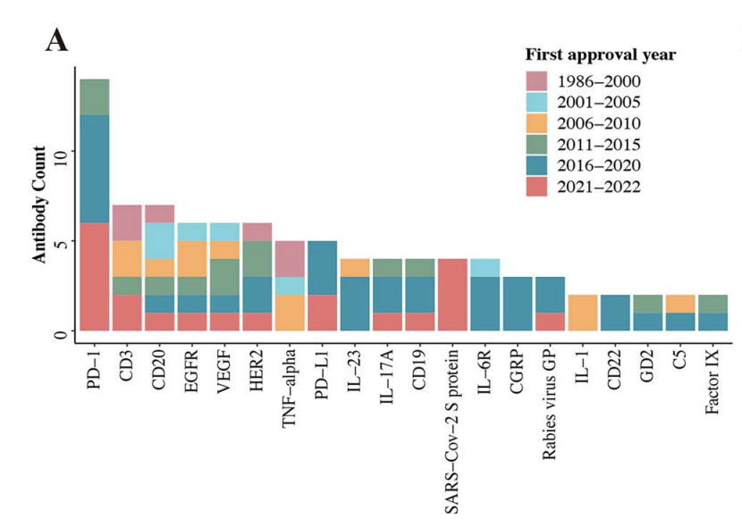 【1】 Lyu X, Zhao Q, Hui J, Wang T, Lin M, Wang K, Zhang J, Shentu J, Dalby PA, Zhang H, Liu B. The global landscape of approved antibody therapies. Antib Ther. 2022 Sep 6;5(4):233-257.