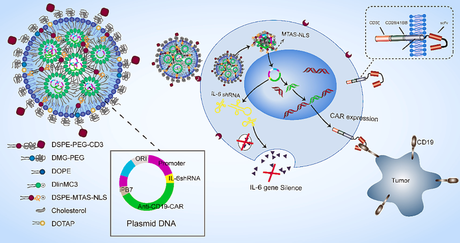 【2】 Zhou JE, Sun L, Jia Y, Wang Z, Luo T, Tan J, Fang X, Zhu H, Wang J, Yu L, Yan Z. Lipid nanoparticles produce chimeric antigen receptor T cells with interleukin-6 knockdown in vivo. J Control Release. 2022 Oct;350:298-307.