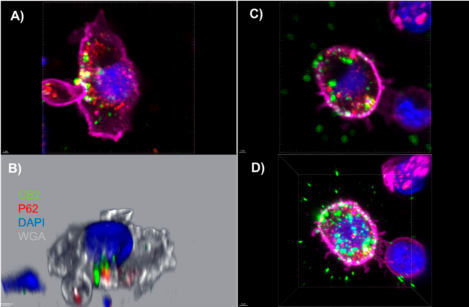 共聚焦光学显微镜检查免疫化学法处理后表达 CB2 受体的