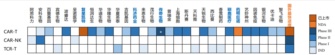 * 目前在研的CAR-T中,国内临床研究以Phase II作为关键性试验,Phase III为产品在美进度