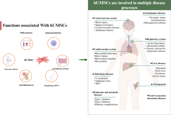 目前,hUMSCs被用于治疗各种疾病。通过以下几种机制和方式: