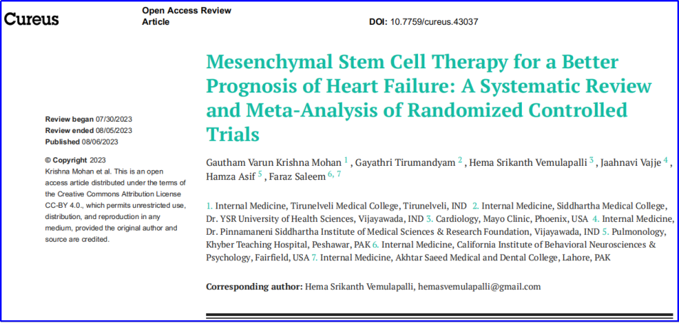 对于干细胞移植的安全性及有效性上,近日在著名期刊杂志上出版的《Mesenchymal Stem Cell Therapy for a Better Prognosis of Heart Failure: A Systematic Review and Meta-Analysis of Randomized Controlled Trials》中使用Mate分析对MSC治疗心衰的安全性及有效性进行了评价。