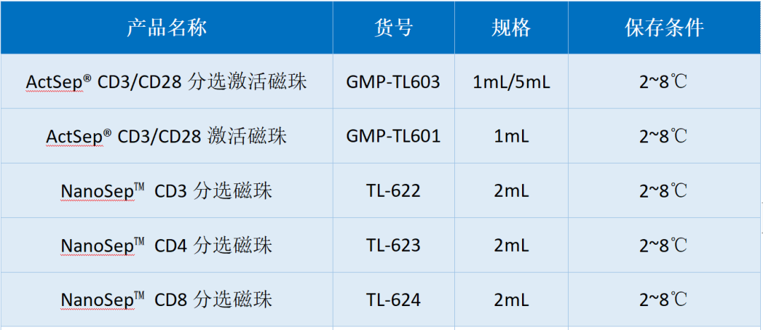 由于纳米磁珠是性质优良的偶联载体,同时具有结合与分离的功能,能够大大地简化传统复杂性的实验操作,具有明显的提高分离和富集效率优势,因而在生物学和医学领域得到了广泛的应用。比如当今备受关注的CAR-T疗法,在将T细胞免疫‘战士’变成‘超级战士’前,必须分离富集获得我们需要的目的细胞,而磁珠在这个过程中就发挥了积极作用。选用纳米磁珠作为T细胞分选策略,市场上主要有CD3、CD4或者CD8的分选磁珠试剂。
