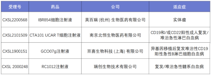 CAR-NK疗法本身具有独特的抗肿瘤效应,不受MHC限制的细胞毒性、产生细胞因子和免疫记忆等特点,在已有的生产规范加持下,CAR-NK已被各大药企认为最有希望成功商业化的“通用型”抗癌产品。CDE官网显示,上海先博生物科技有限公司提交的CD19 CAR-NK 细胞疗法IND申请获CDE受理。但事实上这不是我国企业的第一次尝试,英百瑞生物医药有限公司自主研发的英百瑞IBR854细胞注射液临床试验申请获得国家药监局受理,为国内首个针对实体瘤的非基因编辑方法的通用型CAR-NK细胞药物。