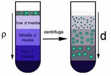 (3)密度梯度离心:用一定的介质在离心管内形成连续或不连续的密度梯度,将细胞混悬液或匀浆置于介质的顶部,通过重力或离心力的作用使细胞分层、分离。