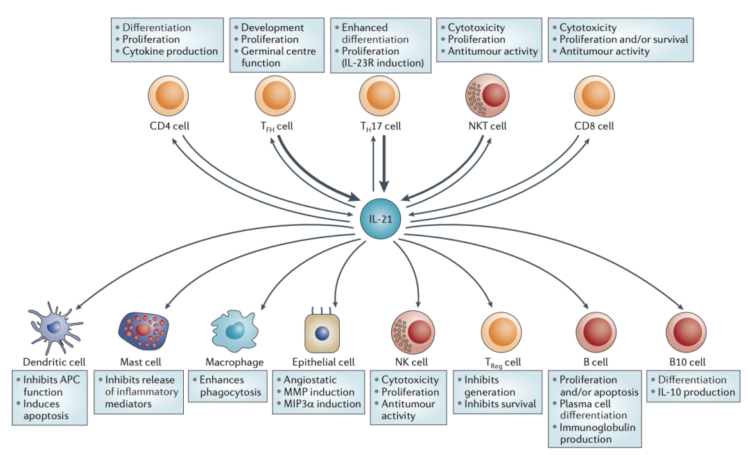 Fig1:IL-21的来源及功能目标
