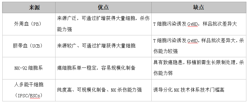 从表中我们可以发现iPSC-CAR NK细胞似乎成为一个新的 “子热点”,这是因为较外周血来源、脐带血来源、NK-92细胞系来源相比,iPSC可以克服其他来源衍生的 NK 细胞常见的缺陷。多能干细胞可在未分化状态下无限增殖,因而iPSC可以稳定提供均质化的足量NK细胞产品。iPSC也可以很好的利用基因工程技术,IL-15/IL-15R 融合蛋白的异位表达、CISH缺失和CD38等技术已成功引入iPSC-NK细胞,增强了扩增能力和长效的细胞毒性。目前虽然使用外周血来源NK或脐带血来源NK的临床试验取得了令人满意的疗效,但这些来源的NK细胞会受血液采集分离、供体个体差异等影响带来NK细胞产量的不稳定性以及需要对具有低增殖能力的分化细胞进行通用操作的重重挑战。另外NK-92细胞系来源NK具有致癌隐患,出于安全性考虑,在其使用前必须经过辐照,这也大大限制了NK-92在体内的增值活性与持久性,其临床疗效有限不宜推广。而iPSC来源的CAR-NK不但可平台化制备,还具有无限增殖、免疫排异小、细胞一致性高、可降低成本等优点,能够更好的保证CAR-NK疗法的质量,具有众多应用优势。综合考虑,iPSC来源的CAR-NK是更优异的选择。
