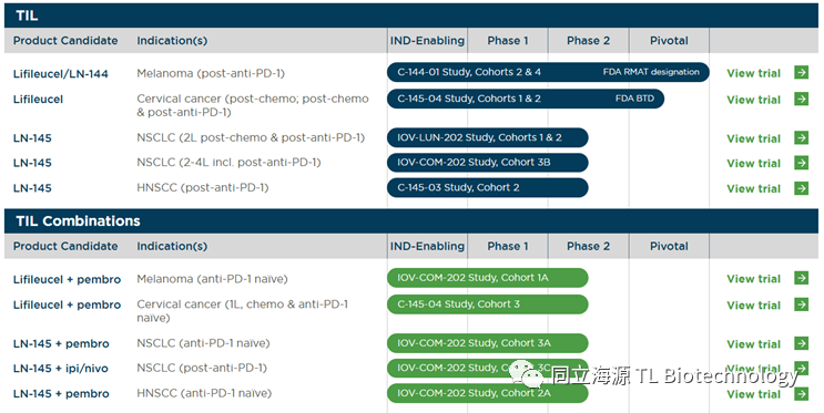 Fig2. Iovance官网展示的TIL疗法过程以及在研管线