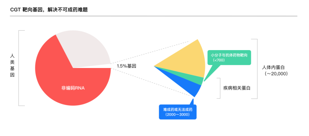 近年来,随着基因编辑、基因改造等生物技术逐步成熟,细胞与基因疗法(CGT)发展突飞猛进,为肿瘤和罕见病患者带来了新希望。细胞与基因疗法(Cell and Gene Therapy, CGT)分为细胞治疗和基因治疗两大部分,通过改变细胞内的遗传信息,进而改变基因表达及相应的细胞性状,最终达到治愈疾病的目的。CGT凭借其在治疗机制和治疗效果等方面具有传统的小分子和大分子药物难以比拟的优势,填补了难治性疾病治疗手段的空白,为癌症、遗传病等难治性疾病提供了全新的治疗理念和思路,继而成为全球创新药领域竞争最为激烈的新兴领域之一。