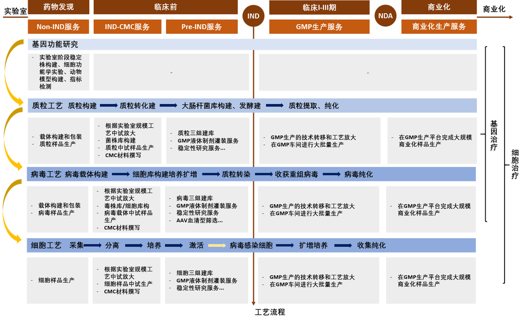 细胞与基因治疗技术工艺路线主要包含三个方面:质粒、病毒载体和细胞工厂,提升这三个方面的工艺开发技术、大规模生产能力,从而更好地进行质量控制和成本控制对于CGT用户至关重要。
