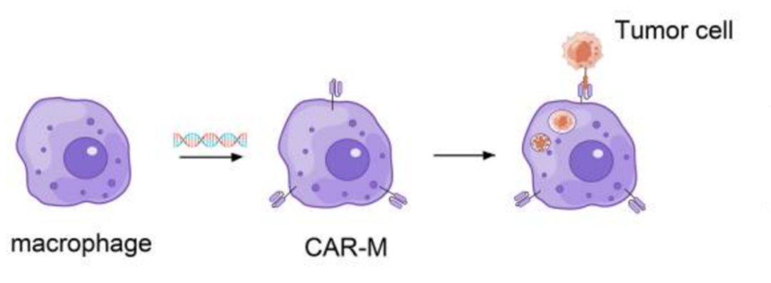 特异性靶CAR巨噬细胞(CAR-M)为肿瘤治疗开辟了新的治疗途径。在血液肿瘤的治疗中,CAR-M可以对CD19阳性和Her2阳性慢性髓性白血病传代细胞产生优越的抗肿瘤作用。CAR-M在实体肿瘤中也同样发挥抗肿瘤作用,如Her2阳性卵巢癌细胞系、SKOV3和表达GD2的神经母细胞与瘤黑色素瘤等。