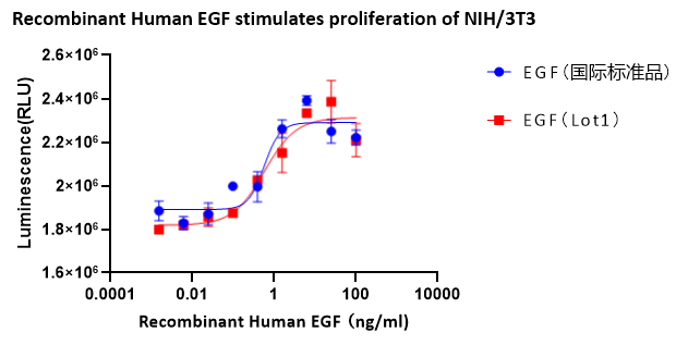 表皮生长因子 EGF(Epidermal Growth Factor)是一类重要的生长因子。EGF是由53个氨基酸分子组成的肽链,链中含有6个半胱氨酸分子,半胱氨酸分子间形成稳定的二硫键,使整条肽链成为三个环联部分的活性物质。EGF作为丝裂原广泛用于神经干细胞的体外培养,并可作为诱导剂促进神经干细胞向神经元、星形胶质细胞和少突胶质细胞分化。适用于生产细胞治疗产品。