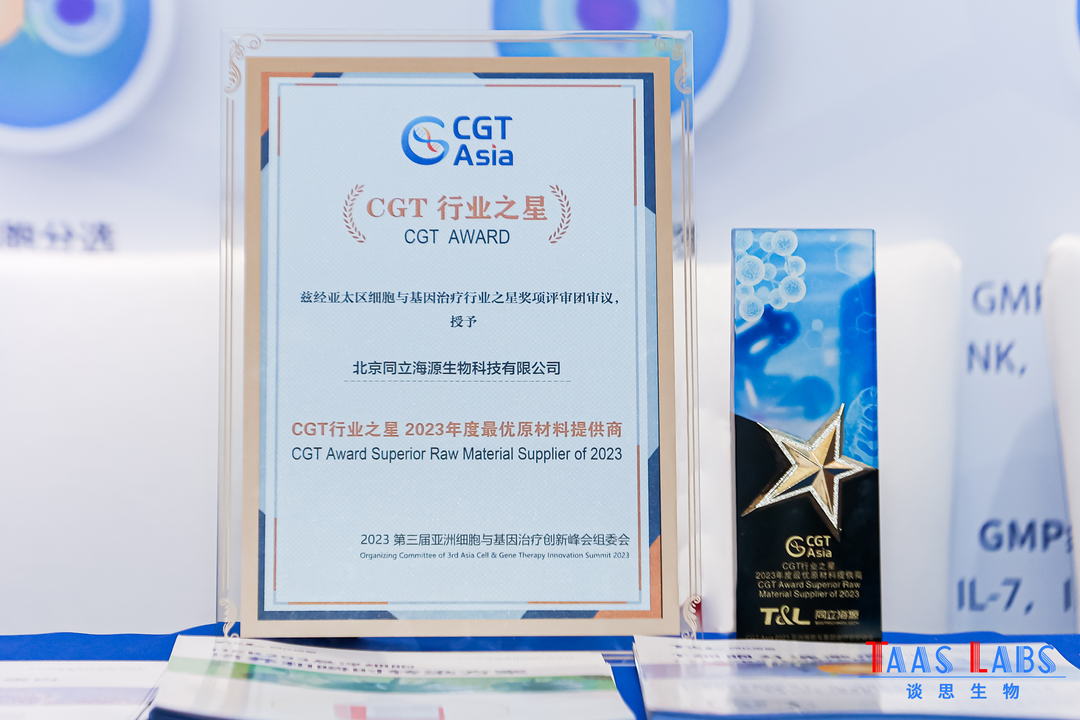 “CGT Awards CGT行业之星-2023年度亚太区细胞与基因治疗行业之星奖项”,面向全球,旨在为细胞与基因治疗科研转化方向提供强有力支持,促进提升行业研发实力,提升品牌影响力。细胞与基因治疗行业之星年度最优原材料提供商奖是由专家评审团结合评选维度规则:技术实用与创新、市场表现(市场占有率、对标产品/公司)、客户评价(质量保障、服务流程清晰度)、发展空间、论文发表及专利情况等方面进行的专业评选。